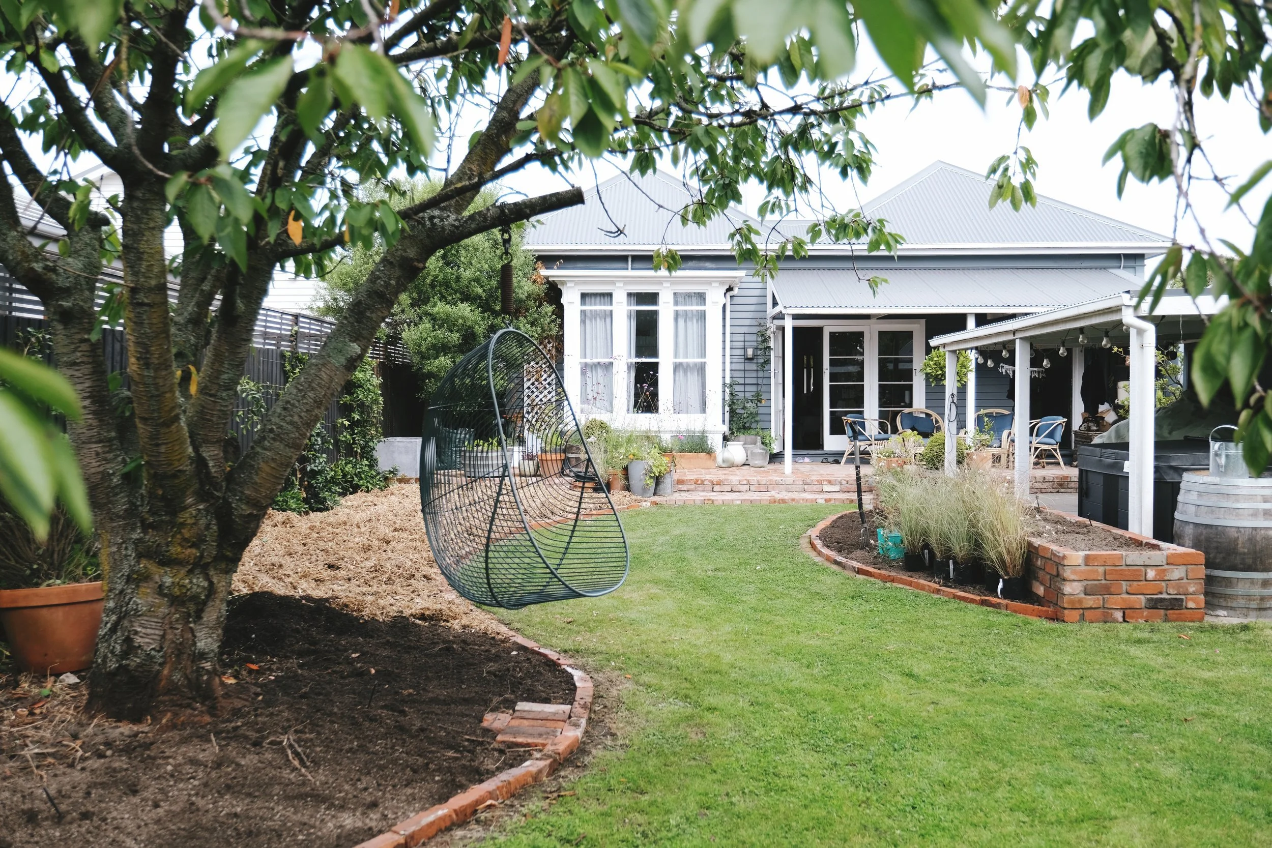 By pulling the garden into the lawn with sweeping lines, it now creates an element of interesting structure in itself, working for the garden instead of planting politely standing guard around its formerly square edges.